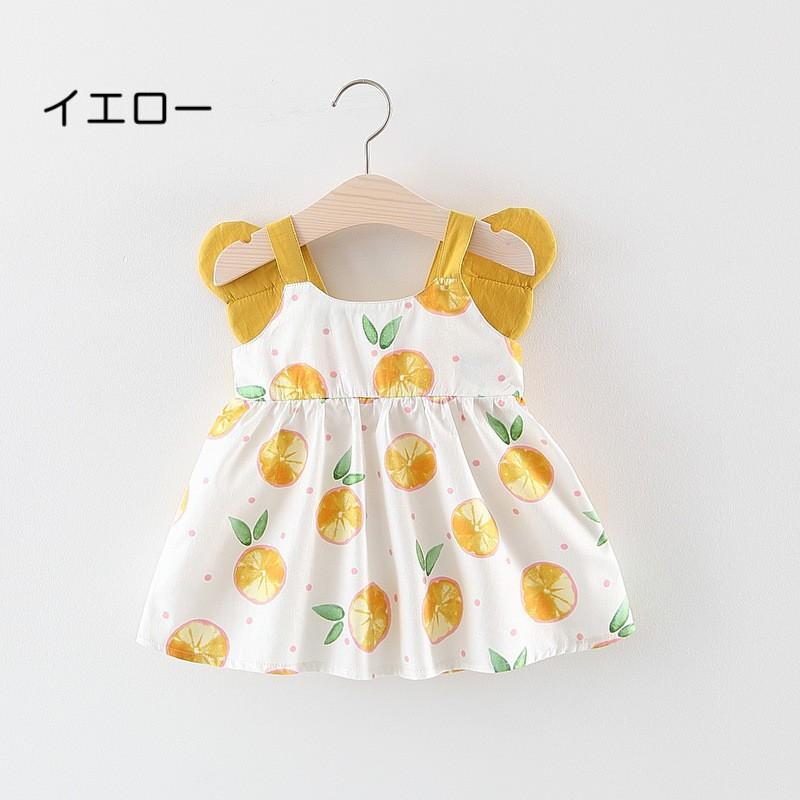 ワンピース ノースリーブ ベビー キッズ 羽 フルーツ 女の子 女児 子供服 子ども 可愛い かわいい おしゃれ フェミニン イエロー ピンク
